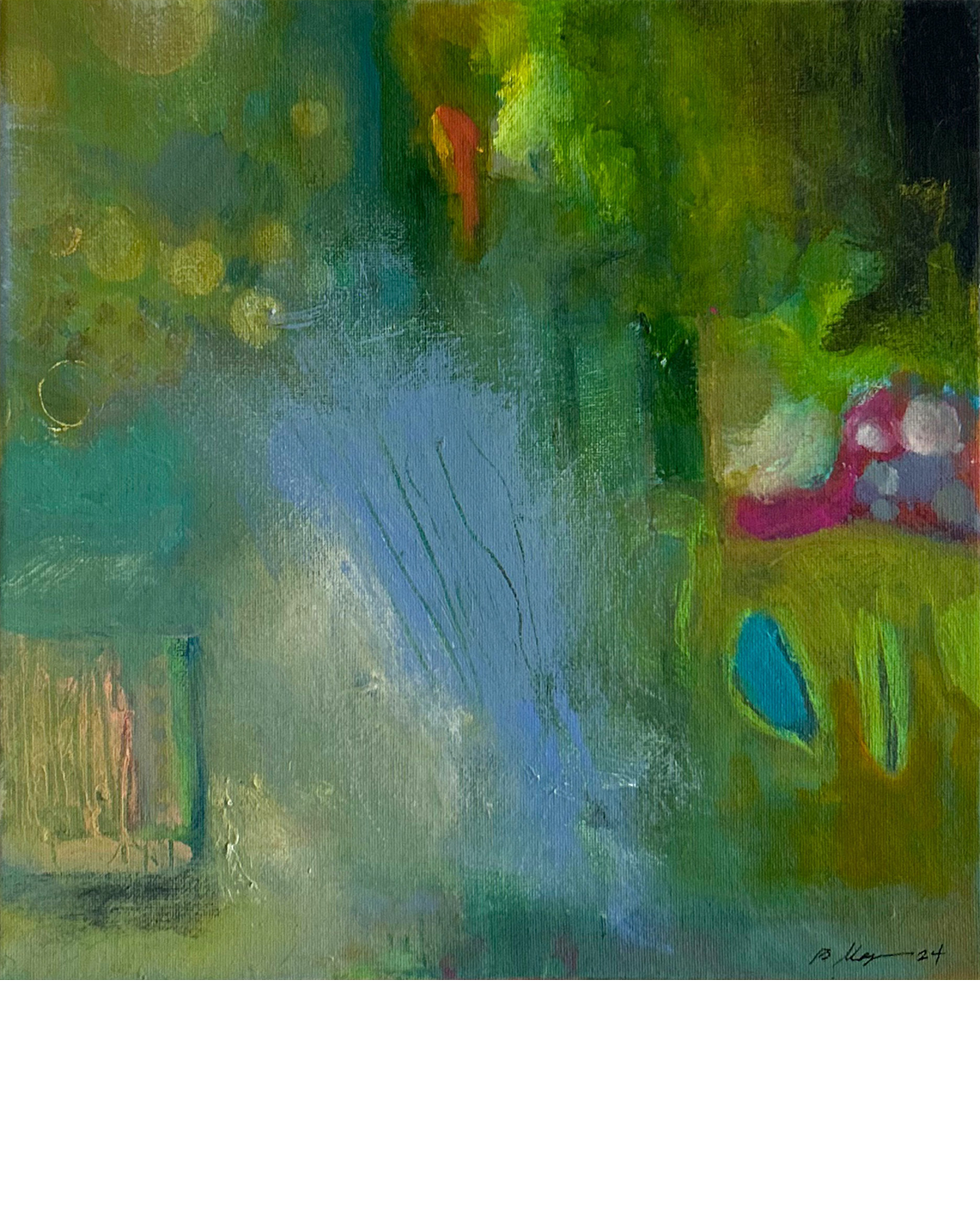 The process of painting is deeply cathartic—both meditative and meaningful. Through color and form, I seek to create visual spaces that offer peace, healing, and the opportunity to use your imagination. My hope is that viewers can find solace and joy in the work, and perhaps, even a momentary sense of harmony in an often confusing and unsettled world.
